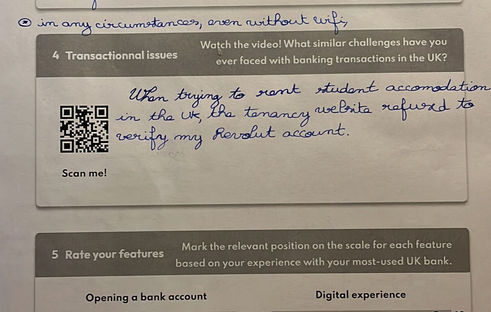 I also gathered insights from foreign customers about their banking experiences in the UK.